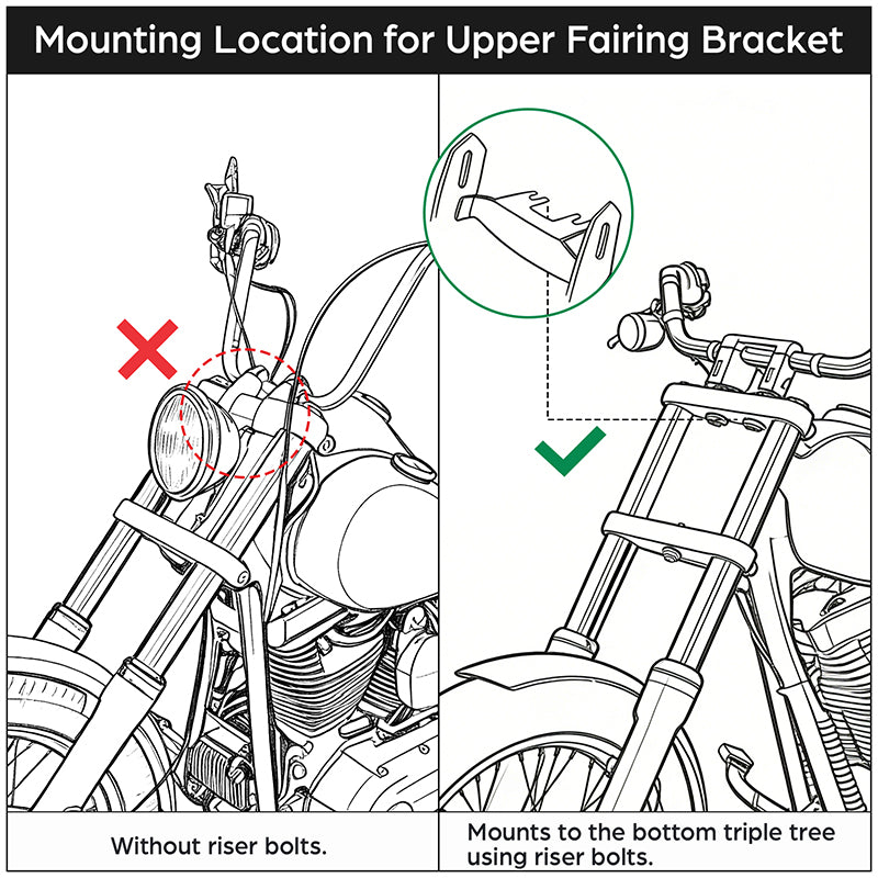 This will NOT mount on Dyna models with a cast triple-tree riser setup.